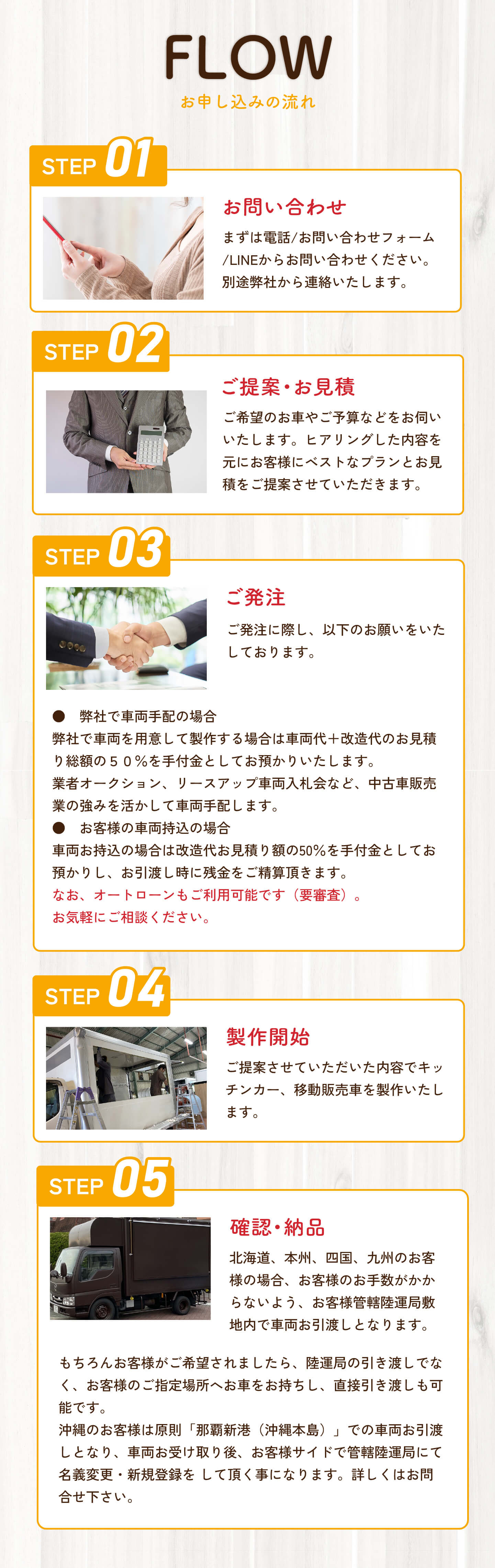 | 事業内容 | キッチンカー・移動販売車の設計・製作・販売・中古車の販売・車検 |